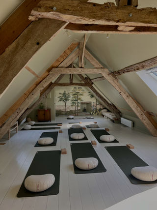 Une magnifique salle de yoga sous les toits.